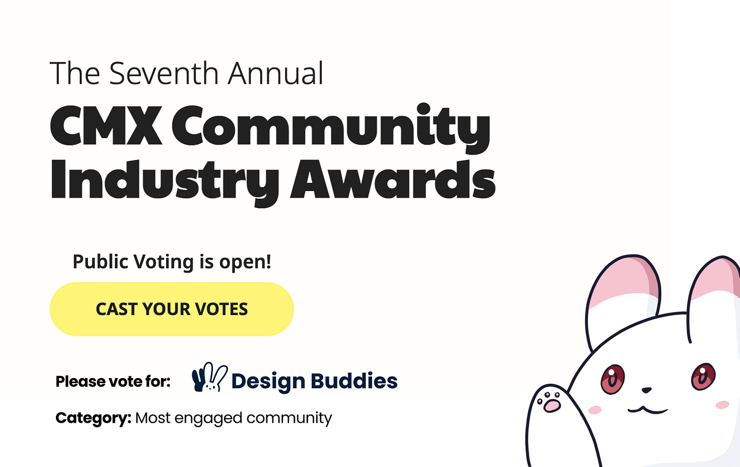 Please vote Design Buddies for Most Engaged Community in the CMX awards (takes 1 min and we appreciate your support)