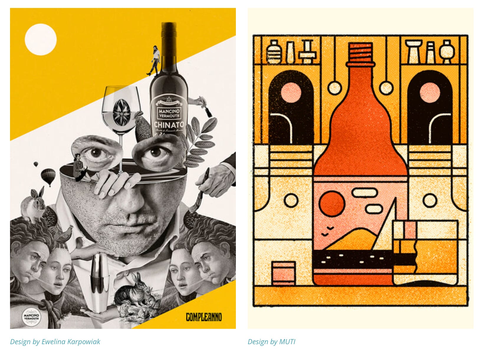 Retro-modern fusion: Retro typography and color palettes paired with modern layouts. Modern gothic fonts with badges and crests. Nostalgia with a fresh twist.